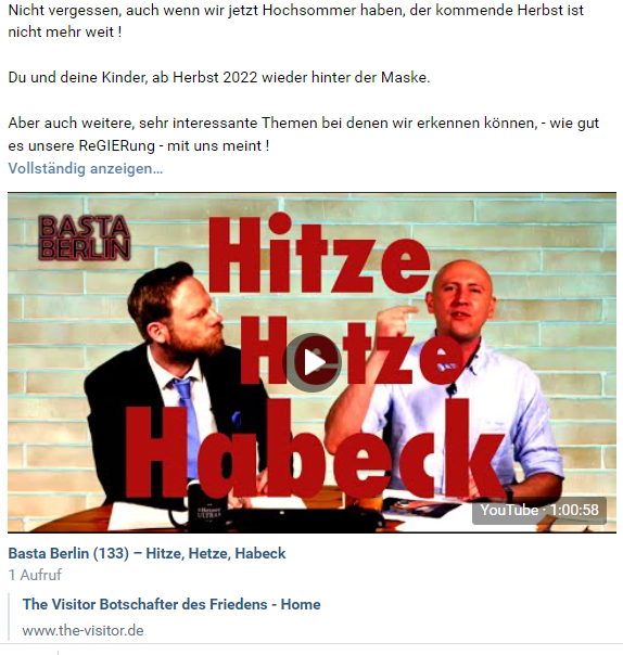Das Video mit Habeck sollte dazu dienen, dass die Menschen erkennen, was mit uns " gespielt " wird.