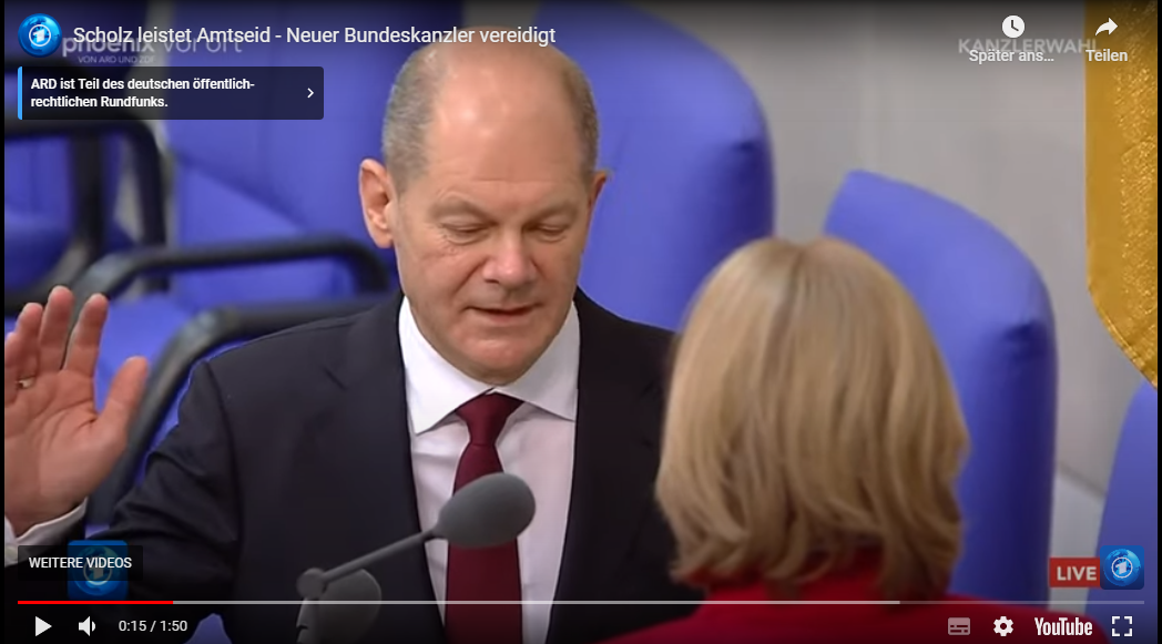 - "Ich schwöre, dass ich meine Kraft dem Wohle des deutschen Volkes widmen, seinen Nutzen mehren, Schaden von ihm wenden, das Grundgesetz und die Gesetze des Bundes wahren und verteidigen, meine Pflichten gewissenhaft erfüllen und Gerechtigkeit gegen jedermann üben werde. So wahr mir Gott helfe."