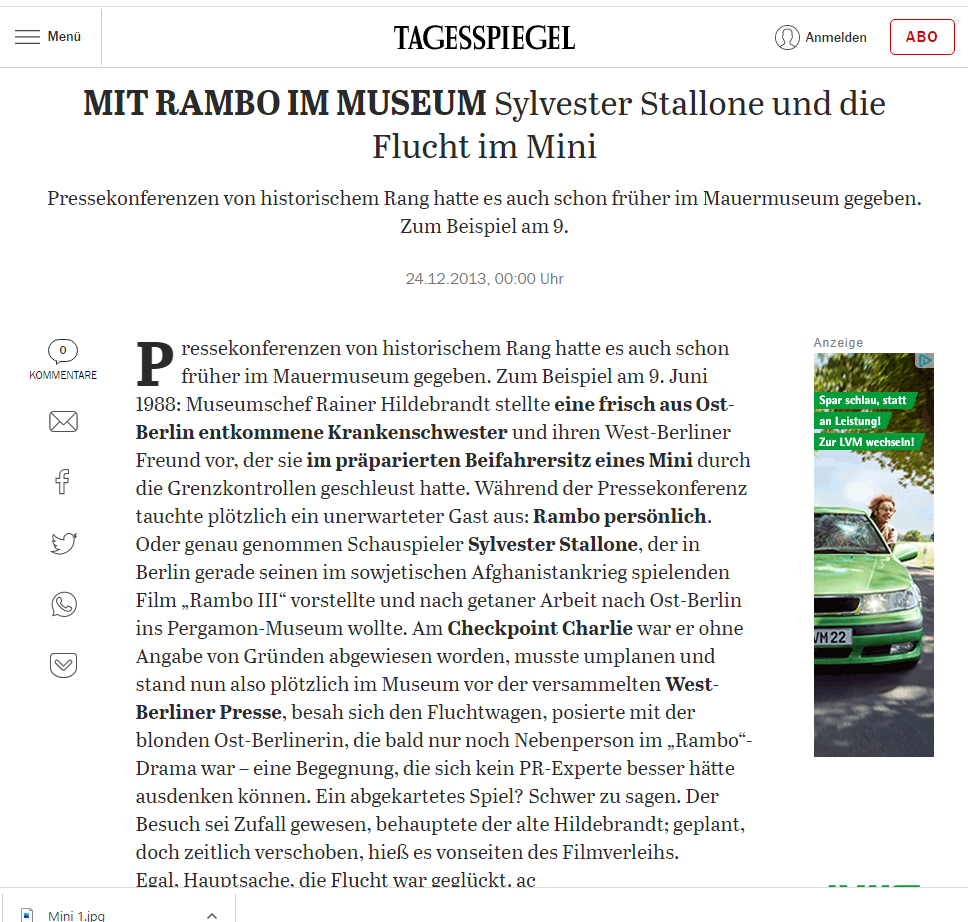 Der West-Berliner Freund war ich und die Dame die im Tagesspiegel beschrieben wurden war eine Freundin aus Ost - Berlin.