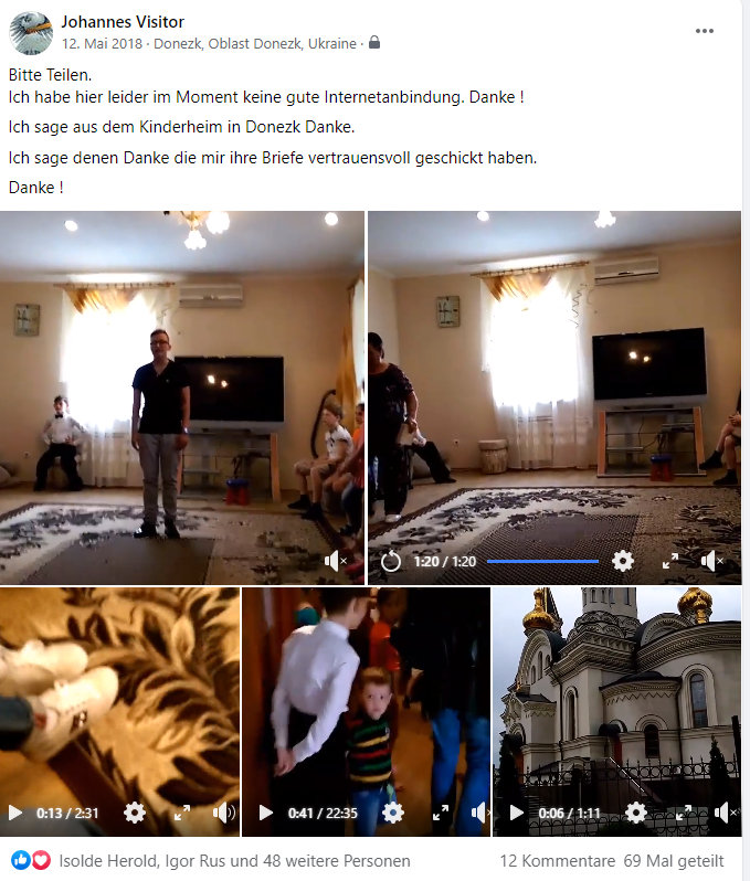 Es sind Videos von einem meiner Besuche in einem Waisenhaus in Donezk und nach dem Betrachten der Videos aus der nahen Vergangenheit kam mir auch alles was ich im Donbass damals noch gesehen und erlebt habe wieder hoch.