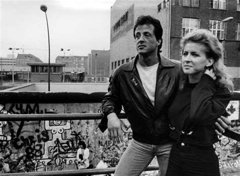 Sylvester Stallone embraces East Berlin nurse Liane Suendermann at West Berlin’s Checkpoint Charlie on 9 June 1988.